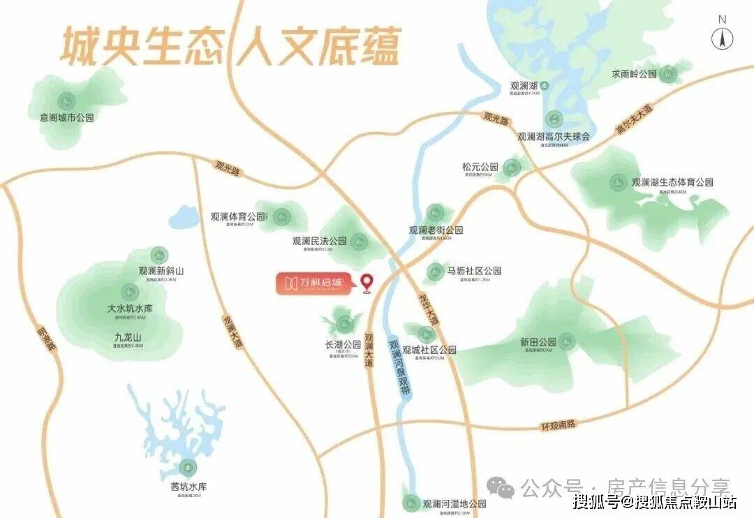 项目周边汇集五大公园,观澜湖生态体育公园(运营)、观澜民法公园、观澜体育公园(在建)、观澜河湿地公园、长湖公园(规划)及茜坑水库。