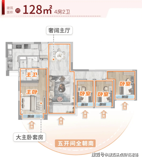 户型最大的亮点是东南向瞰江,超16米的南向采光面,能将白鹅潭的江景与阳光引入日常的每一刻——无论是晨起的家庭早餐、午后的静心阅读,还是夜晚的温馨相聚,开阔的江景始终是家中最美的背景。独门独户设计,私密性强,入户有独立玄关,能打造专属的入户空间,仪式感拉满。