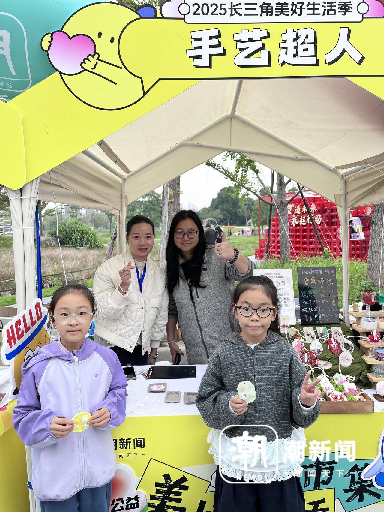 今日份“手艺超人”摊位提供手工皂和手工香薰制作,小朋友汤雨泽和楼予汐主动要求学习制作属于自己的手工皂,还开心地与手作老师合影。