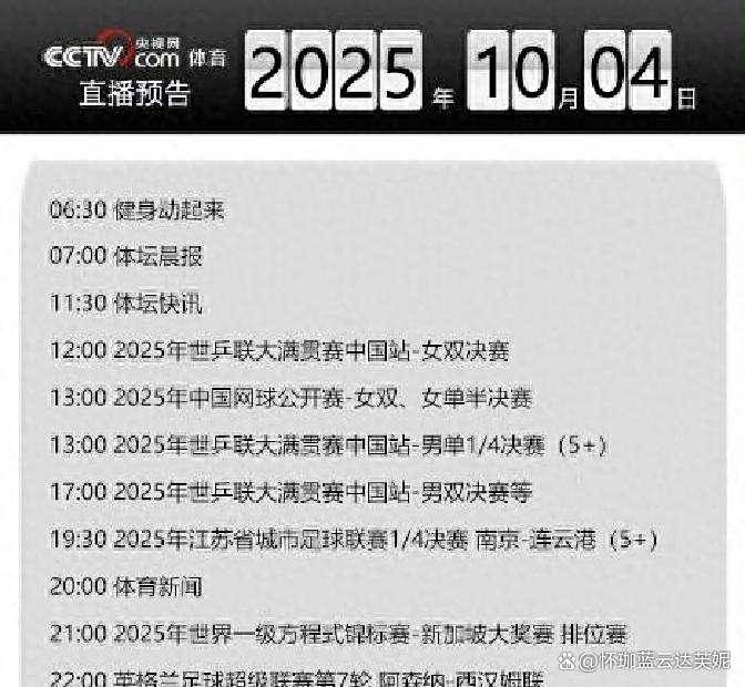 2025-10-05多宝体育,多宝体育官方网站,多宝体育APP下载国庆假期,别人家都在“疯狂”旅游嬉戏,我们体育圈却是在用强劲节奏拉满氛围,硬生生把一份节日过成了竞技嘉年华。别不信,2023年10月4号这一天光是国内的赛事就够让体育迷们挑花了眼——WTT中国乒乓球大满贯赛挥拍如舞,WTA1000中国网球公开赛炮火连天,苏超联赛人声沸腾,连中超补赛也悄声上场。如果你是那种“沙发土豆 凡尔赛”的铁杆球迷,还得随时盯着CCTV节目单,琢磨转播安排,免得错过心头好。