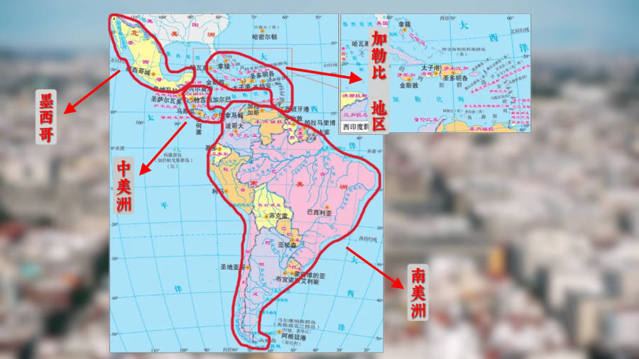 我们现在所说的拉丁美洲,严格意义上准确的表达在国际上叫“拉丁美洲和加勒比”,我们外交部主管拉美事务的部门是“拉丁美洲和加勒比司”,简称“拉美司”。如果听众不做学术研究,可简称为“拉丁美洲”,还可以进一步简称为“拉美”。我们现在说的拉美,包括南美、中美洲、墨西哥以及加勒比地区。